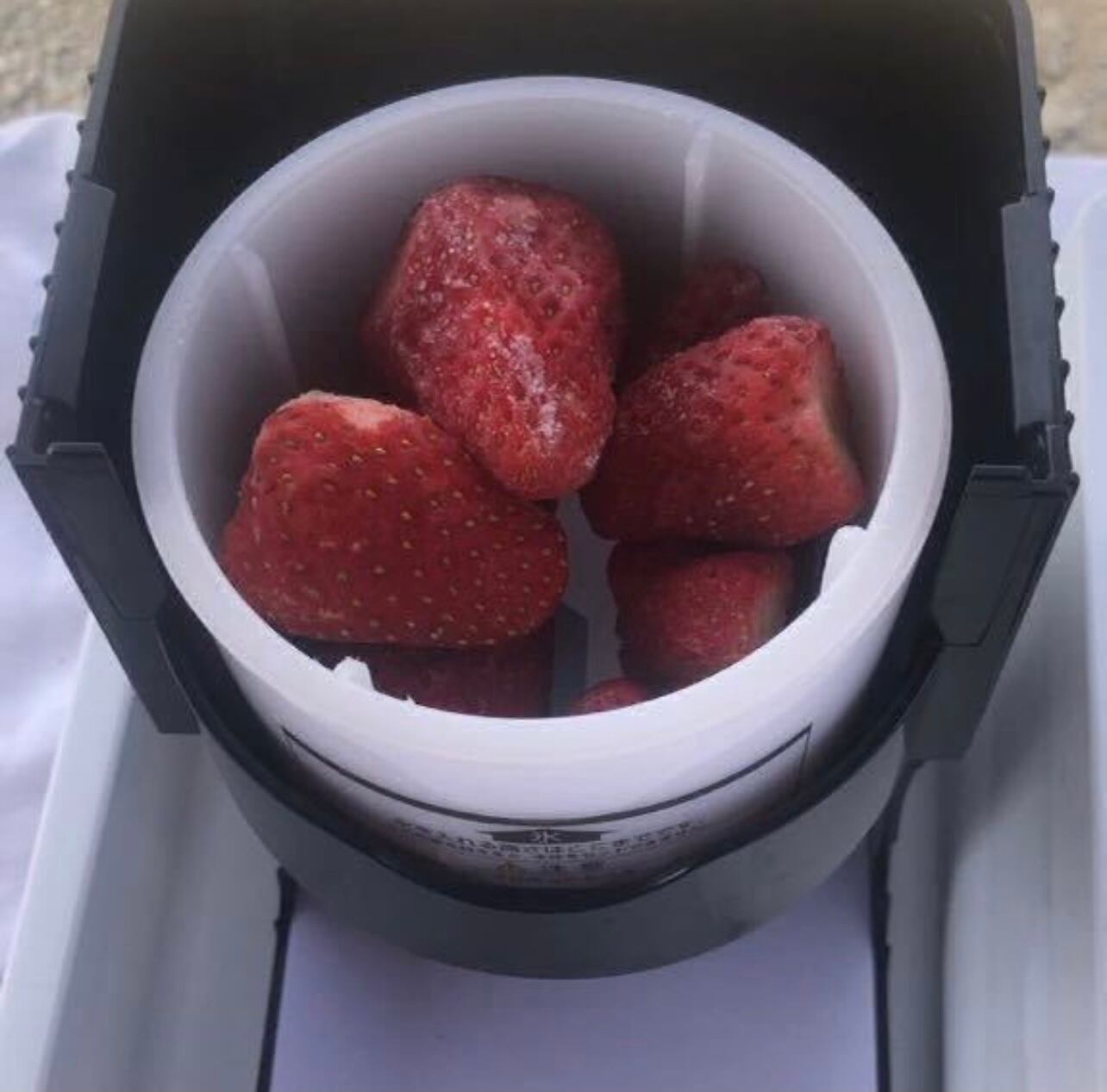 いちごのヘタを1つ1つ丁寧にとり急速冷凍で凍らし